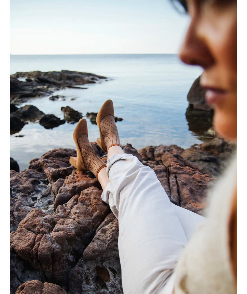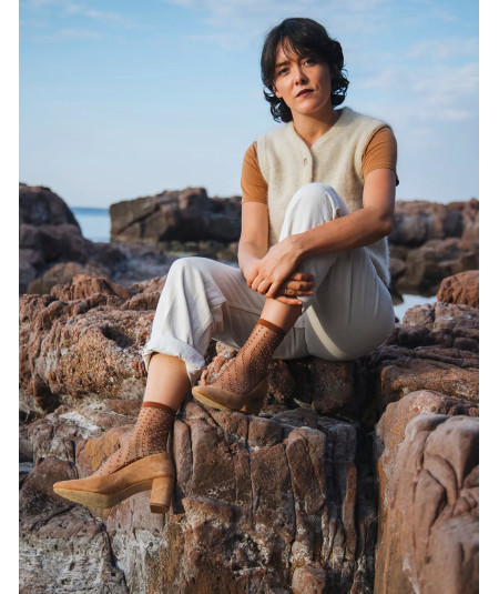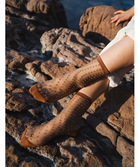 Crescent Dunes Noir ou Marron, un classique intemporel. Ce modèle sobre et élégant s'inspire des panneaux solaires traquant le soleil au cœur du Nevada. Une chaussette à pois noirs et blancs qui viennent épouser votre cheville en toute finesse. Pleine de chic, elle se portera à merveille avec des mocassins et une jupe ou un pantalon carotte noir.