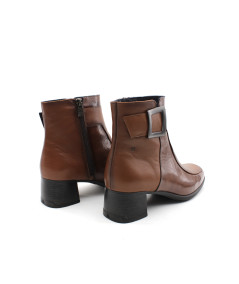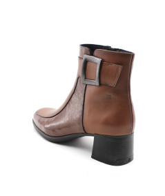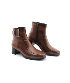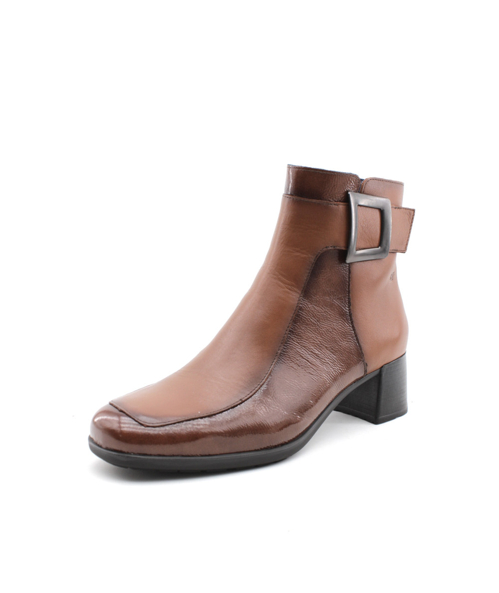 Une nouvelle forme fait son entrée dans la collection avec la bottine à talon pour femme D9199 IKIA en cuir vernis noir ou cuero de la maison espagnole Dorking. Avec une semelle ultra féminine en gomme pour un super amorti, la mode n'aura plus de secret pour vous. Un cuir souple, un zip pour la praticité, habillée d'un bi-matière cuir lisse et cuir vernis ainsi que d'une boucle décorative sur le haut de la tige... Un must have de l'année.