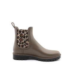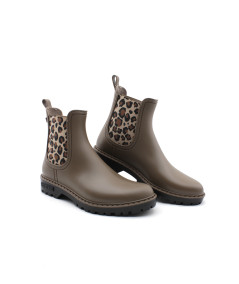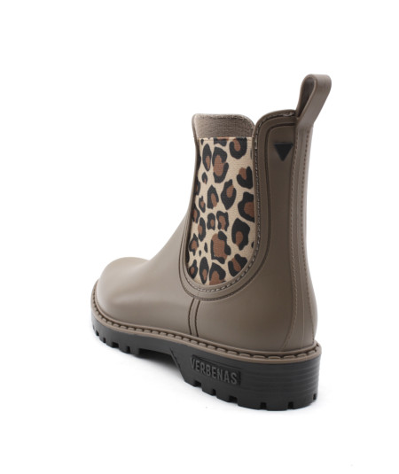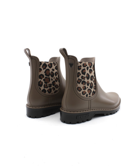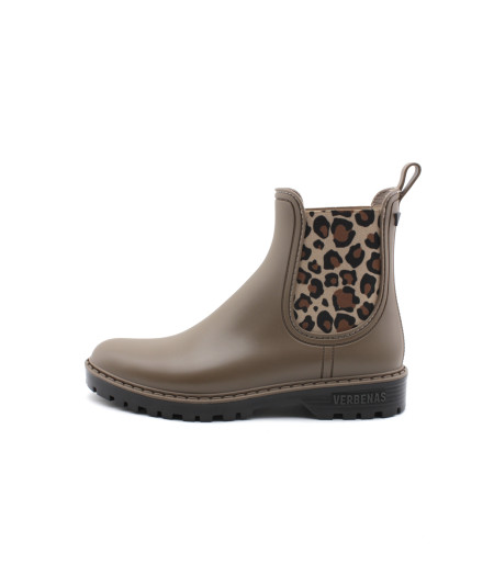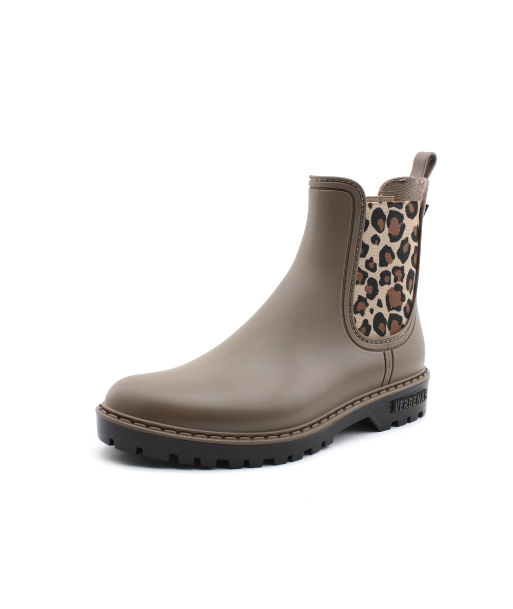 Verbenas vous présente son modèle phare, la bottine de pluie GAUDI MATE ANIMAL en caoutchouc couleur noir ou taupe accompagné de ses élastiques léopard. Avec son look bien a elle, ajoutez une touche de style à vos tenues sans oublier l'aspect pratique, aucune flaque d'eau ne pourra vous arrêter tant que ces bottines seront dans vos pieds...Toujours avec beaucoup de modernité, la maison espagnole nous propose une jolie bottine qui égaiera les journées pluvieuses.